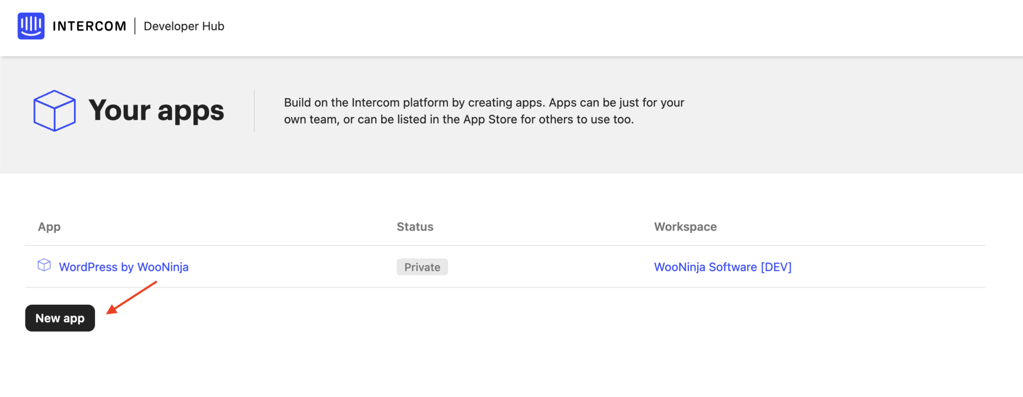 2. If you have existing apps, they will appear; otherwise, your screen will be empty. Click New App
