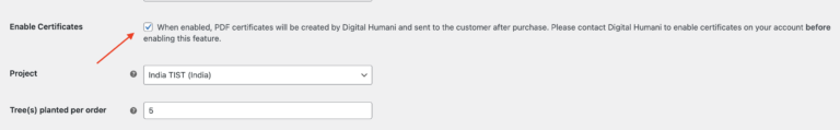 Each product in WooCommerce will have a Digital Humani Setting. This allows you to plant additional trees on a per product basis, or you can elect to only plant trees for certain products.