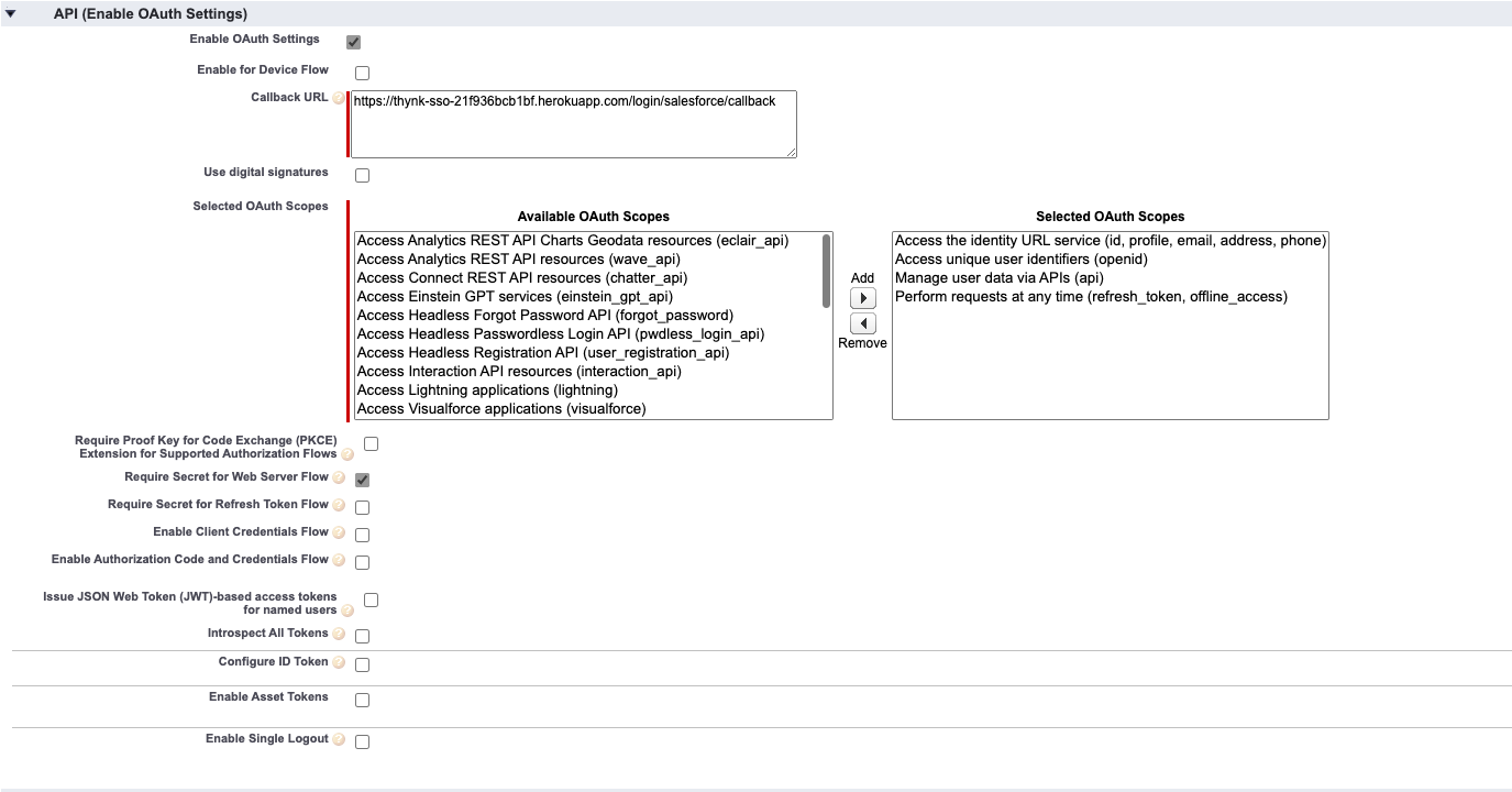 The callback URL is the address of your WooNinja SSO application, followed by /login/salesforce/callback E.g. https://connect.wooninja.io/login/salesforce/callback